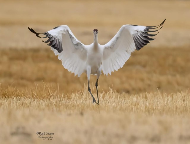Whooping Crane landing by Boyd Coburn