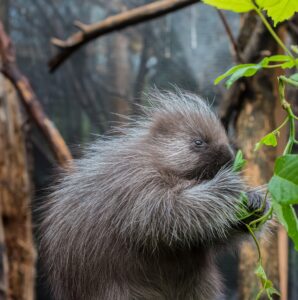 Porcupines move slowly partly because they have short, powerful legs with long, strong claws to help them climb, and partly because they don’t need to run to find food or escape predators. They have an excellent sense of smell, but are quite near-sighted. They tend to live a fairly solitary life, except when raising the one young they have each year.