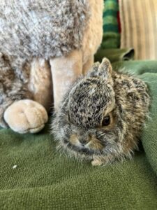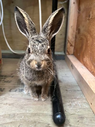 If you come upon a young hare on the side of a trail and want to help it be safer, please do not touch it with your hands, or you will put your scent on it, and it will be endangered by predators. If you must move it, lift it using a handful of leaves or grass to prevent your scent from rubbing off onto it, and place it no more than 3 or 4 feet from the original location. It must not be too far, or Mom will not find it.